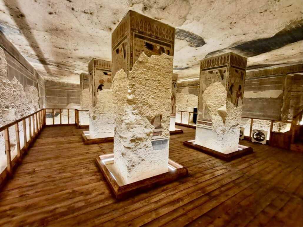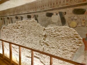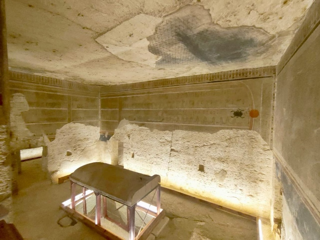 Con il tempo, la tomba rischiò il crollo strutturale e per questo non venne mai aperta al pubblico. Le pitture annerite dalla fuliggine, i pilastri gravemente lesionati, il sarcofago frantumato in centinaia di pezzi, le pareti corrose dai sali e dall’umidità… resero la sepoltura inaccessibile, un luogo fragile e instabile. Eppure, nel silenzio delle sue sale, rimaneva intatto il fascino di un re che governò uno dei periodi più prosperi della storia egizia.