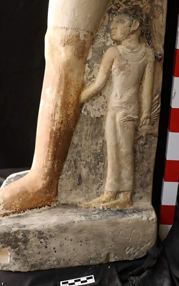 La statua, scolpita in calcare e alta poco più di un metro (103 cm), rappresenta una famiglia egizia realizzata in un modo senza precedenti per quel tempo. Al centro della composizione c’è un nobile, probabilmente un funzionario di alto rango, raffigurato in piedi con il piede sinistro avanzato – una postura tipica delle figure maschili di spicco dell’antico Egitto – simbolo di giovinezza, vitalità e forza. L’uomo indossa un perizoma semi-pieghettato e una parrucca corta e stilizzata: elementi che contraddistinguono l’elevato status sociale. Come fanno notare gli autori dello studio, l’antico scultore prestò grande attenzione anche alla rappresentazione del busto, in particolare alla realizzazione di spalle, clavicola, pettorali e braccia.