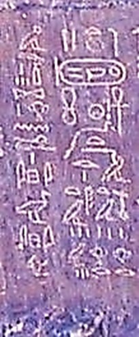 a) Re dell’Alto e Basso Egitto (Mery Ra) possa vivere in eterno, il primo accadimento della festa Sed, missione reale compiuta dal b) Sovrintendente di tutti i lavori del re, amico unico, architetto reale e costruttore nelle due case Mery-Ptah-ankh-Mery-Ra c1-c2) insieme con: il vice capo degli artigiani, il nobile del re Hw-n-Horo-Mery-Ra, il conosciuto dal re e sovrintendente dei costruttori della piramide, Ankh-em-Chennet d) (il vice capo degli artigiani, il nobile del re)2 Nefer-Horo-n-Ptah(-Mery-Ra), suo figlio, Sankh-en-ptah, l’ispettore anziano degli scribi Sesi.