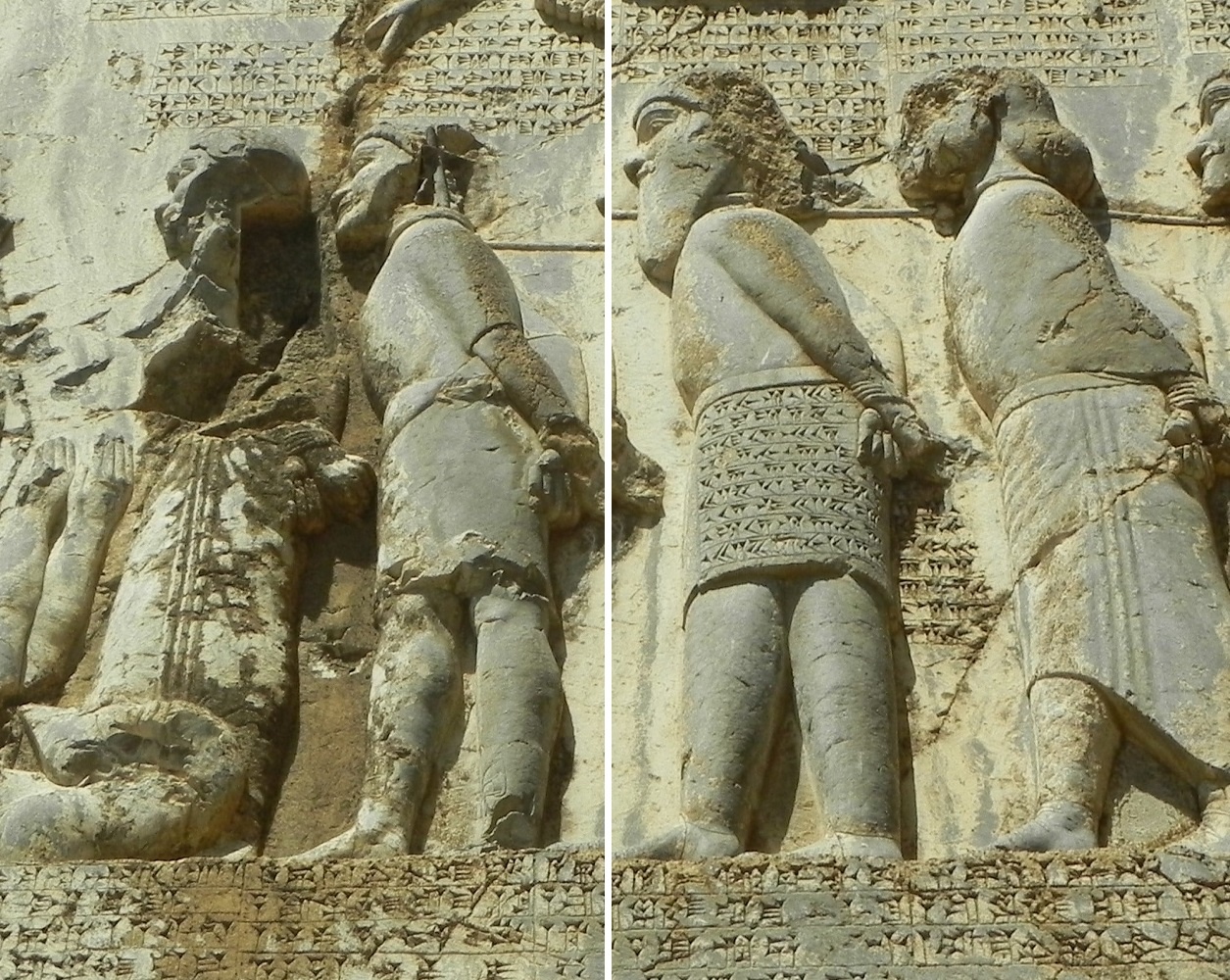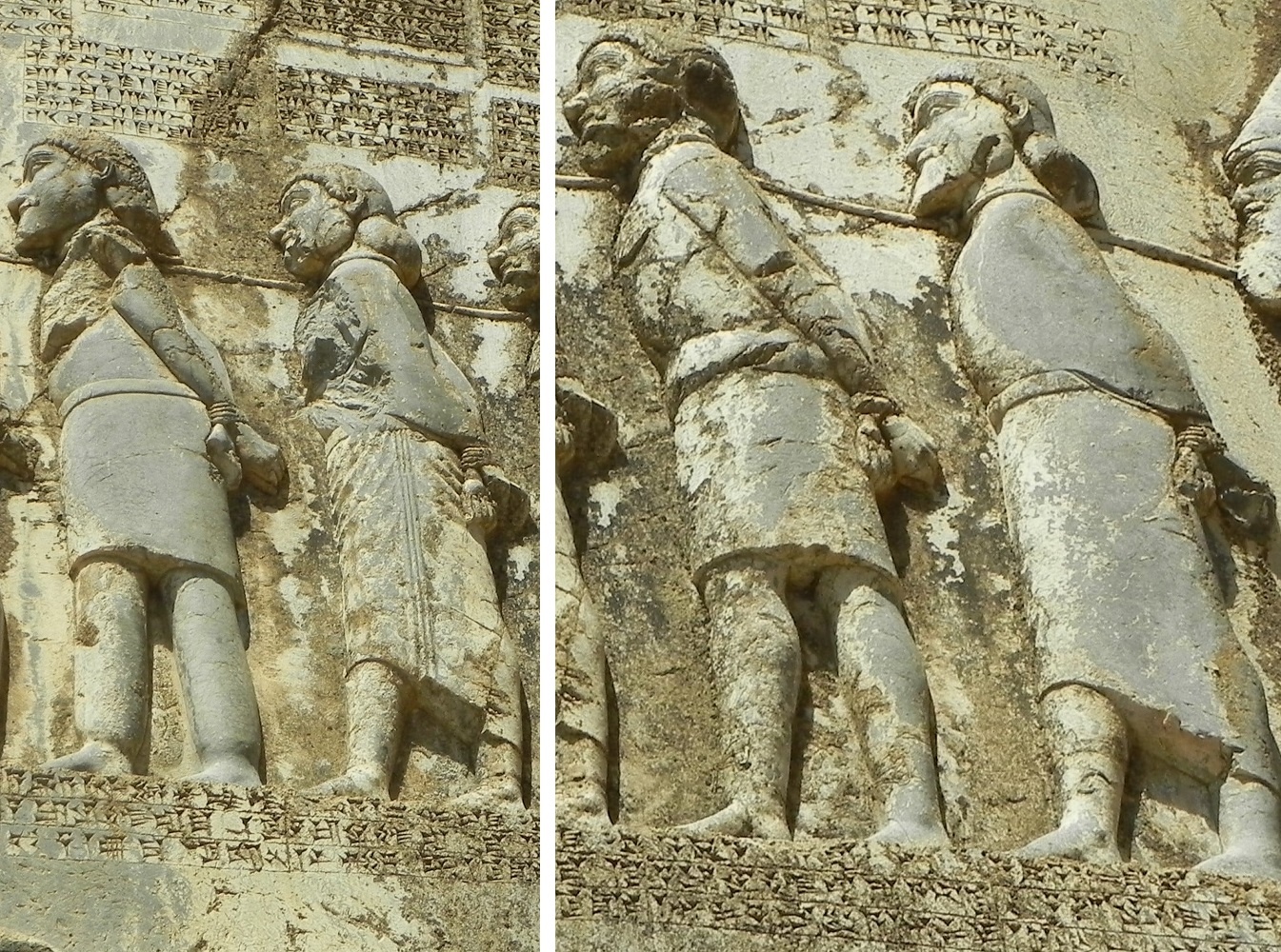 Ma continuiamo con la descrizione del bassorilievo. Altri due ribelli compaiono nella scultura. Si tratta di Citrantakhama della Sagartia e di Vayazdata di Persia (fig.15). Vediamo la loro storia come narrata da Dario nella sua cronaca.