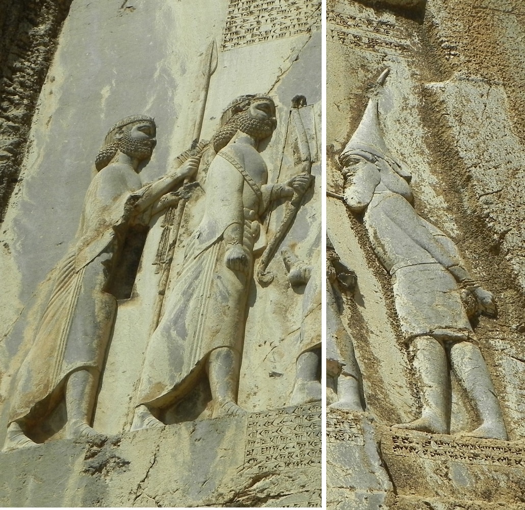 Dario poi non dimentica gli amici che l’hanno aiutato nell’impresa e li nomina tutti. Solo due però avranno l’onore di essere immortalati, alle spalle di Dario, nel bassorilievo. Si tratta di Intaphrenes, con l’arco e Gobryas con la lancia (fig. 17).