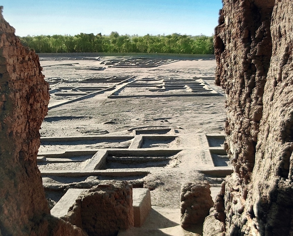 Nella pianura si eleva un edificio di mattoni crudi, di notevole altezza, 18-20 metri. È la deffufa occidentale, un monumento conosciuto da tempo. Di fatto è un antico tempio nubiano, con stanze, passaggi, colonne qualche decorazione e una scala che conduceva a una piattaforma sul tetto. Di certo questa struttura aveva una sua funzione anche nei funerali.