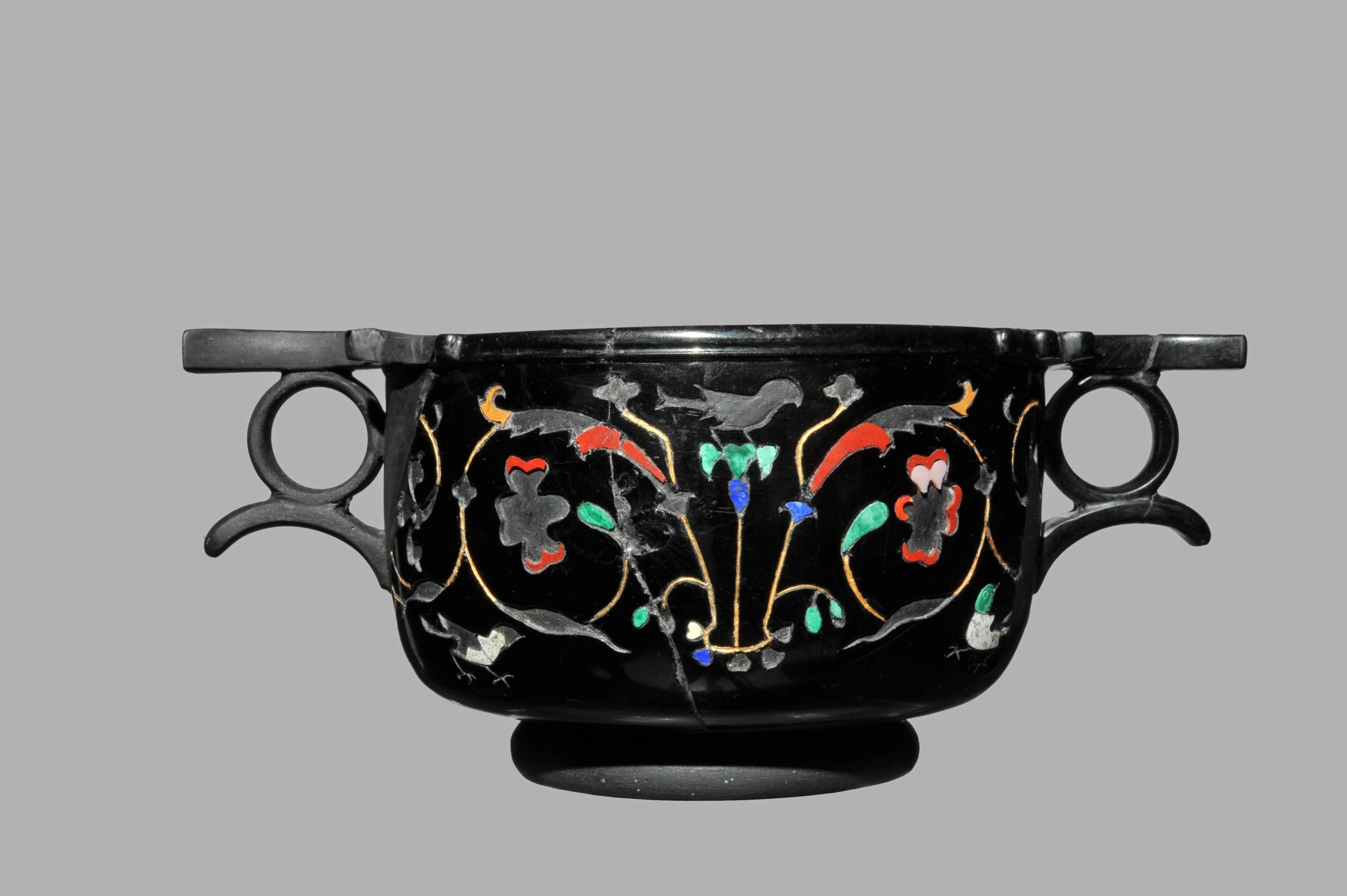 Home Egitto-Pompei : la mostra Skyphos di ossidiana da Stabiae con scene di culto egiziano