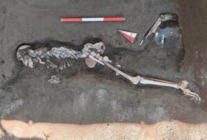 La scoperta è avvenuta nella necropoli di Porta Stabia, appena fuori le mura dell’antica città, durante le recenti indagini archeologiche alla tomba a schola di Numerius Agrestinus Equitius Pulcher. Qui sono emersi i resti di due uomini, entrambi sorpresi dall’eruzione mentre cercavano di raggiungere la salvezza. Le loro morti, avvenute in momenti diversi, raccontano due fasi distinte della tragedia: il più giovane, probabilmente travolto da una corrente piroclastica (una nube ardente di cenere e gas tossici), cercava di allontanarsi dalla città e di raggiungere il litorale; l’altro, più adulto, morì ore prima colpito da una violenta pioggia di lapilli mentre cercava di proteggersi con un mortaio di terracotta ritrovato fratturato al suo fianco. In quel momento di panico, l’uomo, con al mignolo sinistro un piccolo anello in ferro, aveva pensato di portare con sé una lucerna in terracotta per orientarsi in condizioni di scarsa visibilità e un piccolo gruzzolo di dieci monete in bronzo.