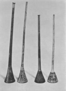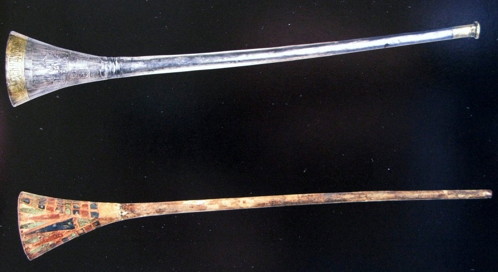 Le due trombe, visibili nel Museo Egizio del Cairo, sono l’una in argento e l’altra in rame (o in bronzo ?)2.