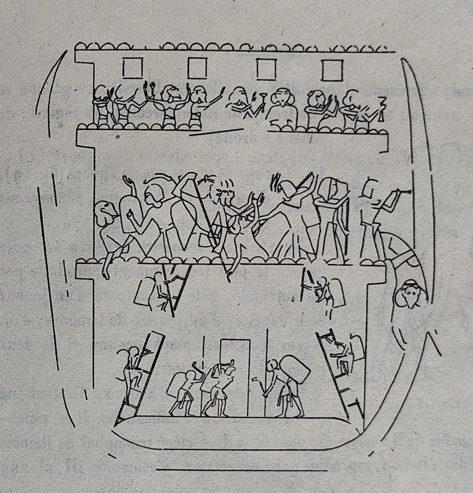 Riportiamo qui solo i divieti dell’Abaton che interessano direttamente il nostro tema: divieto di usare strumenti musicali: non lasciare battere il tamburo e cantare con l’arpa o il flauto. Obbligo di silenzio non lasciare che si alzi la voce là. A Bigge si trovava la tomba di Osiri e quindi ci aspettiamo di trovare il divieto di suonare la tromba. Invece il decreto dell’Abaton vieta il tamburello, l’arpa e il flauto. Nessun accenno alla tromba! Forse questo divieto era tanto scontato da ritenere che non fosse il caso di ufficializzarlo nel decreto.