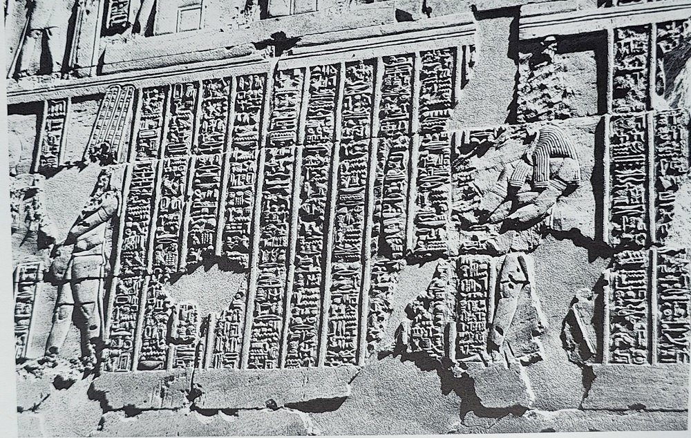 Questo testo indica le prescrizioni relative al culto di Osiri nella vicina isola di Bigge, un’isola inaccessibile, dove era sepolto il dio Osiri10.