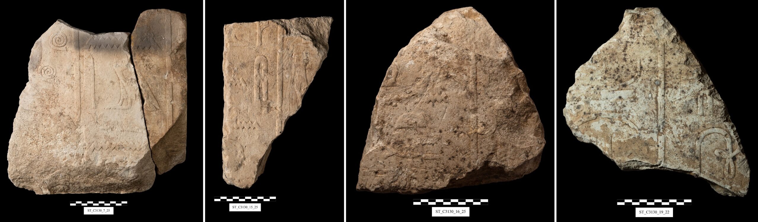 Alcuni blocchi decorati che menzionano festività come le festa di Sokar, la festa di Min o la processione di Ra nel tempio del sole furono già rinvenuti da Borchardt nel 1901, sparsi intorno al tempio. Ora abbiamo trovato altri frammenti di queste iscrizioni che menzionano le stesse feste, associate al nome del re Nyuserra. La cosa più importante però è il luogo di rinvenimento di questi blocchi, tutti trovati nell’area del portico d’ingresso del tempio. Questo sembra indicare che la facciata del tempio, all’esterno, fosse incisa con questo lungo calendario di feste, che ad oggi risulta essere il primo esempio in assoluto di questi “calendari festivi” noti nell’antico Egitto, dal momento che altri esempi simili, come il famoso calendario del tempio funerario di Ramses III a Medinet Habu, sulla riva occidentale di Luxor, sono datati a periodi molto posteriori al regno di Nyuserra.