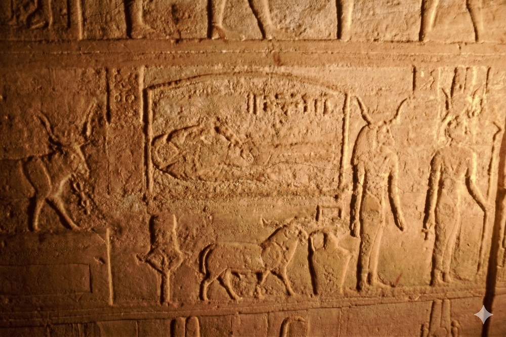 Un’altra figura mostra un personaggio a testa di serpente che colpisce con la lancia un animale sethiano (non riconoscibile).