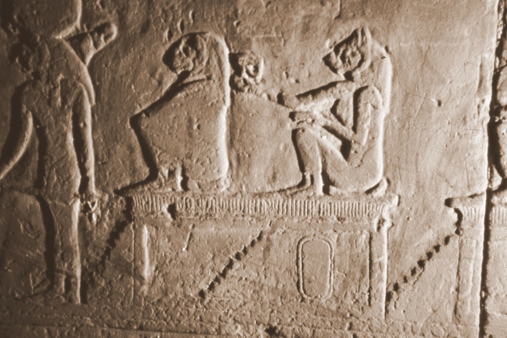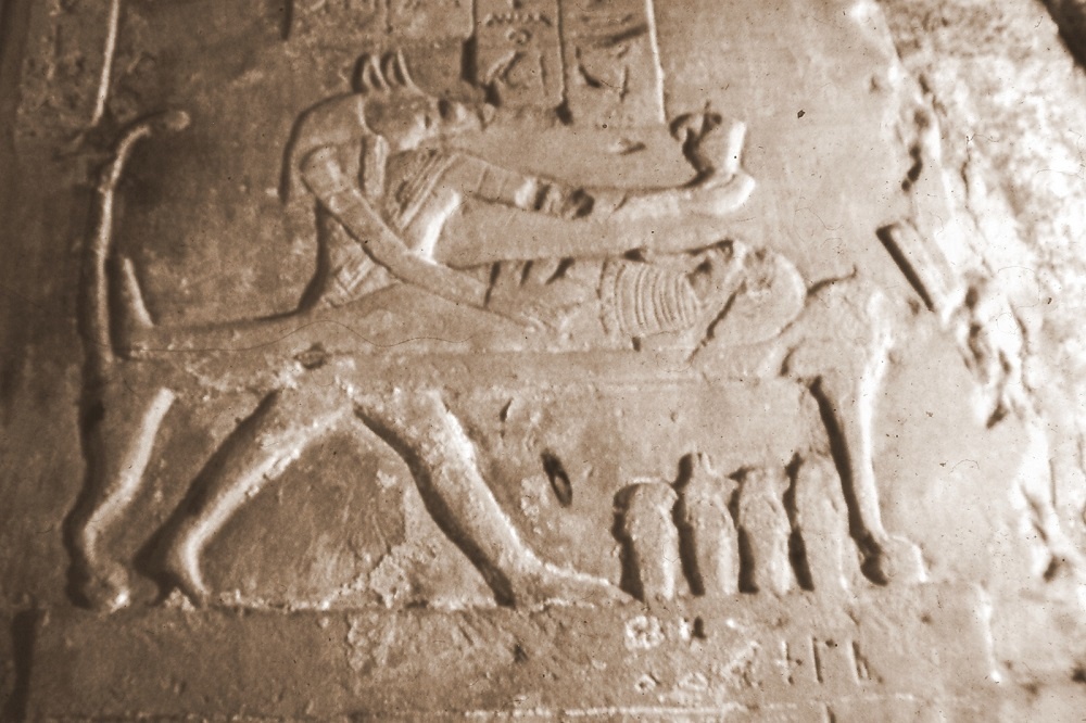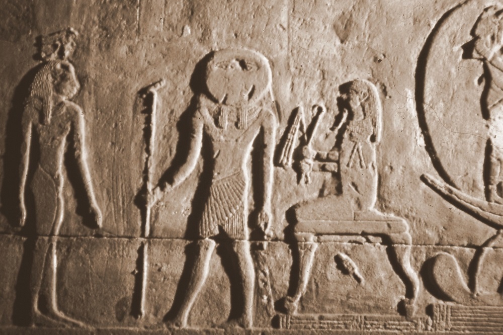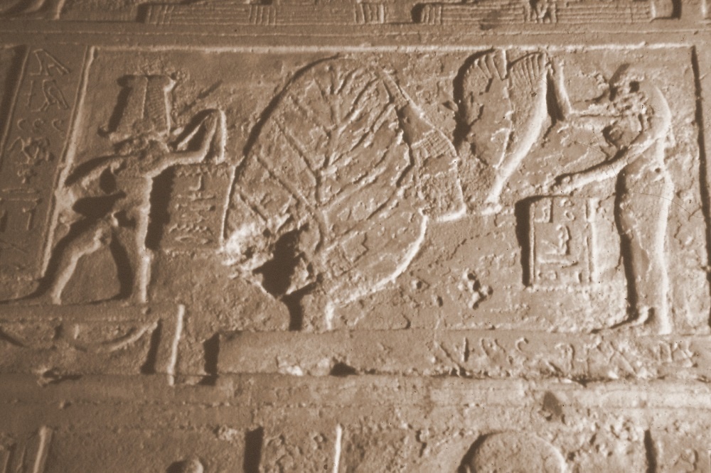 Fig. 3 – Nella parete di un portale è dipinto un re che offre cespi di lattuga al dio Min