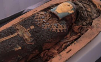 Riceve in dono una maschera d’oro dell’antico Egitto e la restituisce